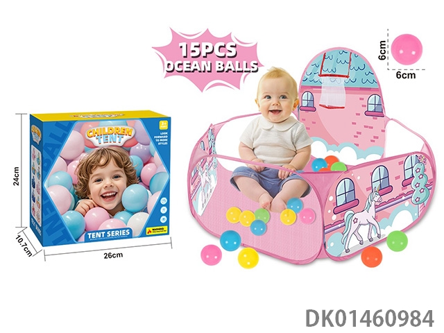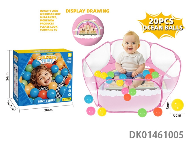 Children’s tent ball pool with 20cs ocean ball - pink castle theme