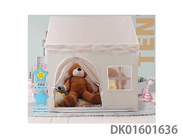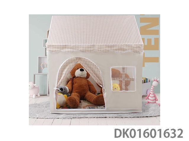 Children’s tent, minimalist style, game house, family house, brown grid with felt, stars