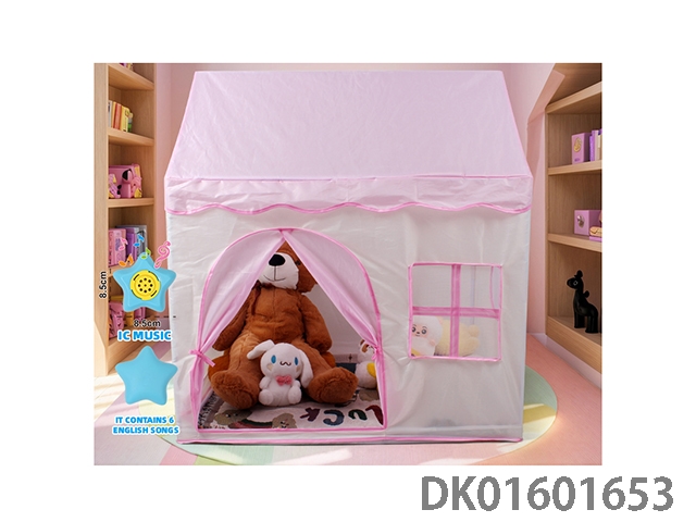 Cross border children’s tent, minimalist style, game house, play house, solid color, pink style, with felt and flowers, new style