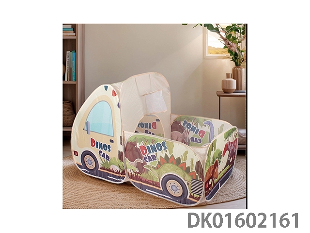 Connected car game house with shooting cartoon dinosaur theme, home play game pool, children’s tent, beige version