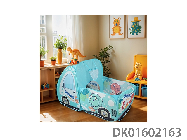 Connected car game house with shooting cartoon dinosaur theme, playing house game pool, children’s tent, blue version