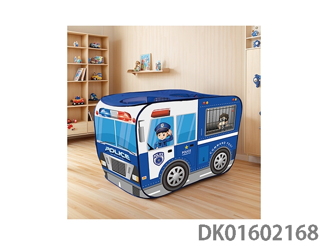 Police car, blue foldable children’s tent, playing house games, small house