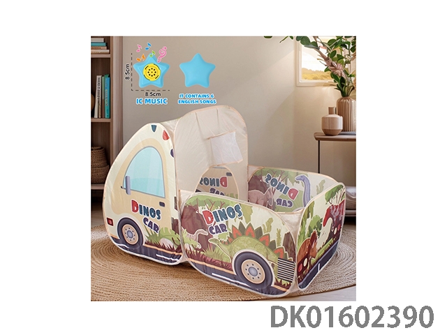 Connected car game house with shooting cartoon dinosaur theme, home play game pool, children’s tent, beige version