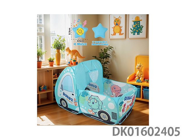 Connected car game house with shooting cartoon dinosaur theme, playing house game pool, children’s tent, blue version