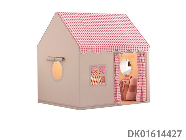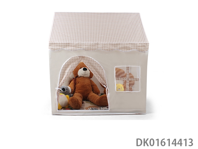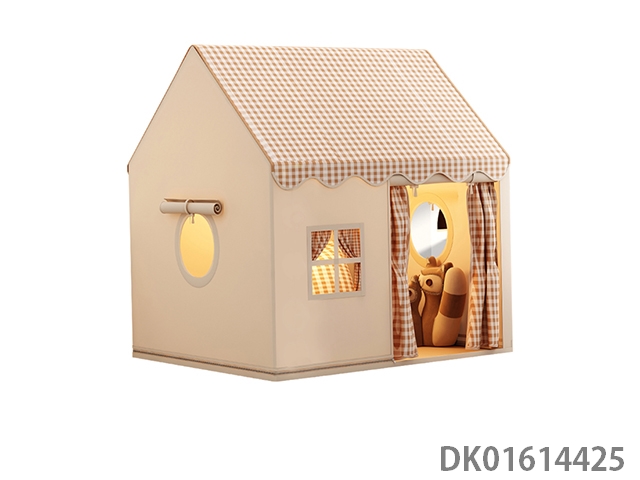 Children’s tent with a brown playful house, simple style, single door zipper design
