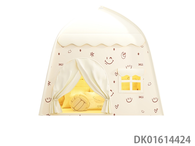Children’s tent playing house, apricot colored roof, smiling face, simple style, single door zipper design, european and american style