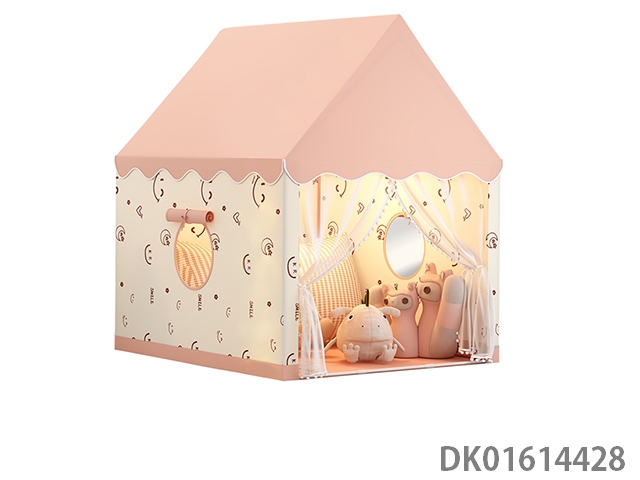 Children’s tent playing house, pink roof, smiling face, simple style, single door zipper design, european and american style