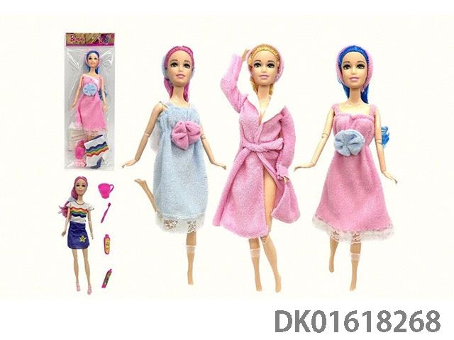 11.5-Inch 13 joint solid body bathrobe fashion barbie doll and wash set 4-piece set and dress up opp bag