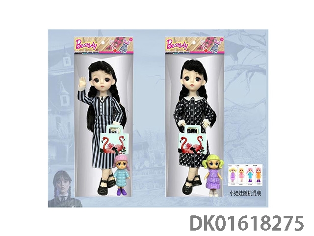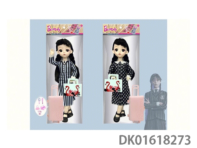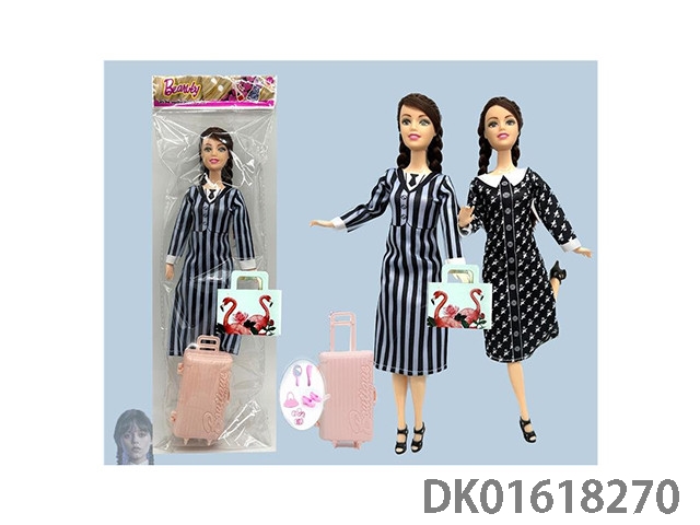 12 Inch 21 joint solid body, real body, wendnesday adams wednesday barbie doll and travel case (with 5 exquisite accessories inside)