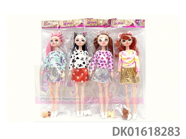 11.5-Inch 13 joint real animal image (detachable headband) barbie doll and small pet dog