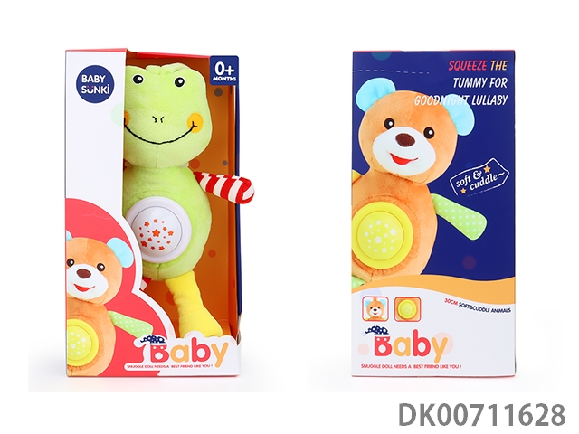 Plush sound and light comfort frog with sling