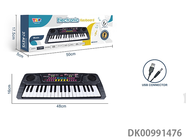 37 Key multifunctional electronic organ with microphone and usb interface cable (black)