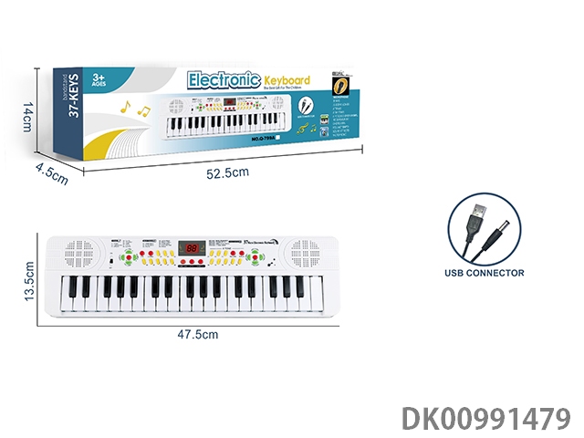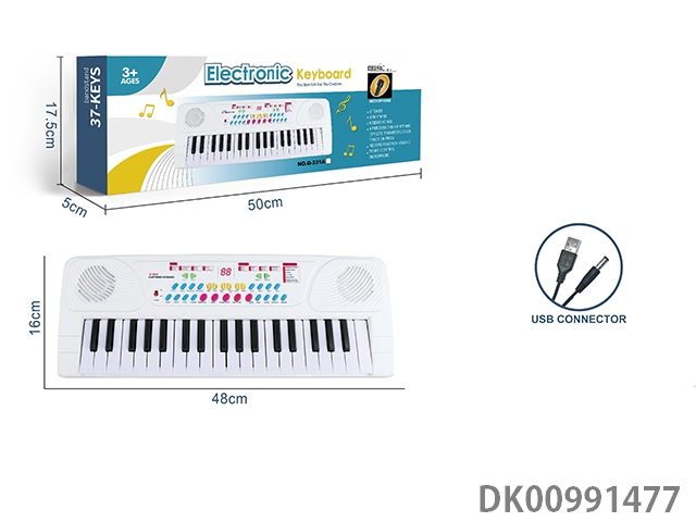 37 Key multifunctional electronic organ with microphone, usb interface cable (white)
