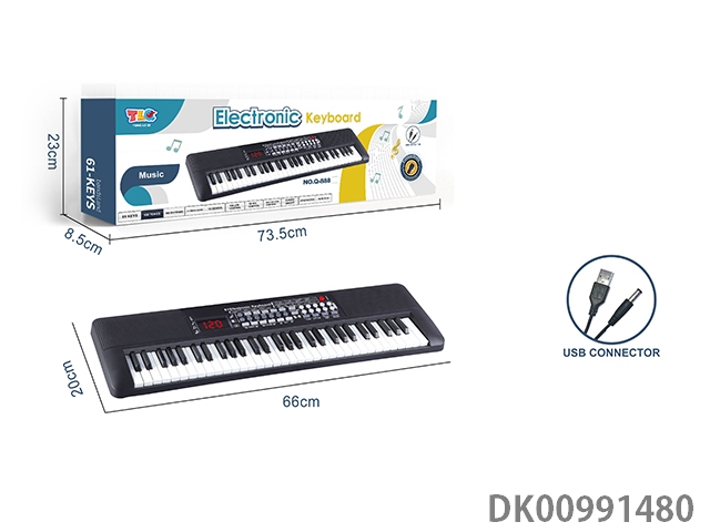 61 Key multi-functional electronic organ with dual speakers digital display, usb cable, microphone (black)