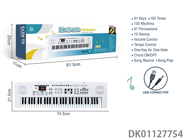 61 Key multifunctional electronic organ with digital, usb connection cable, microphone (white)