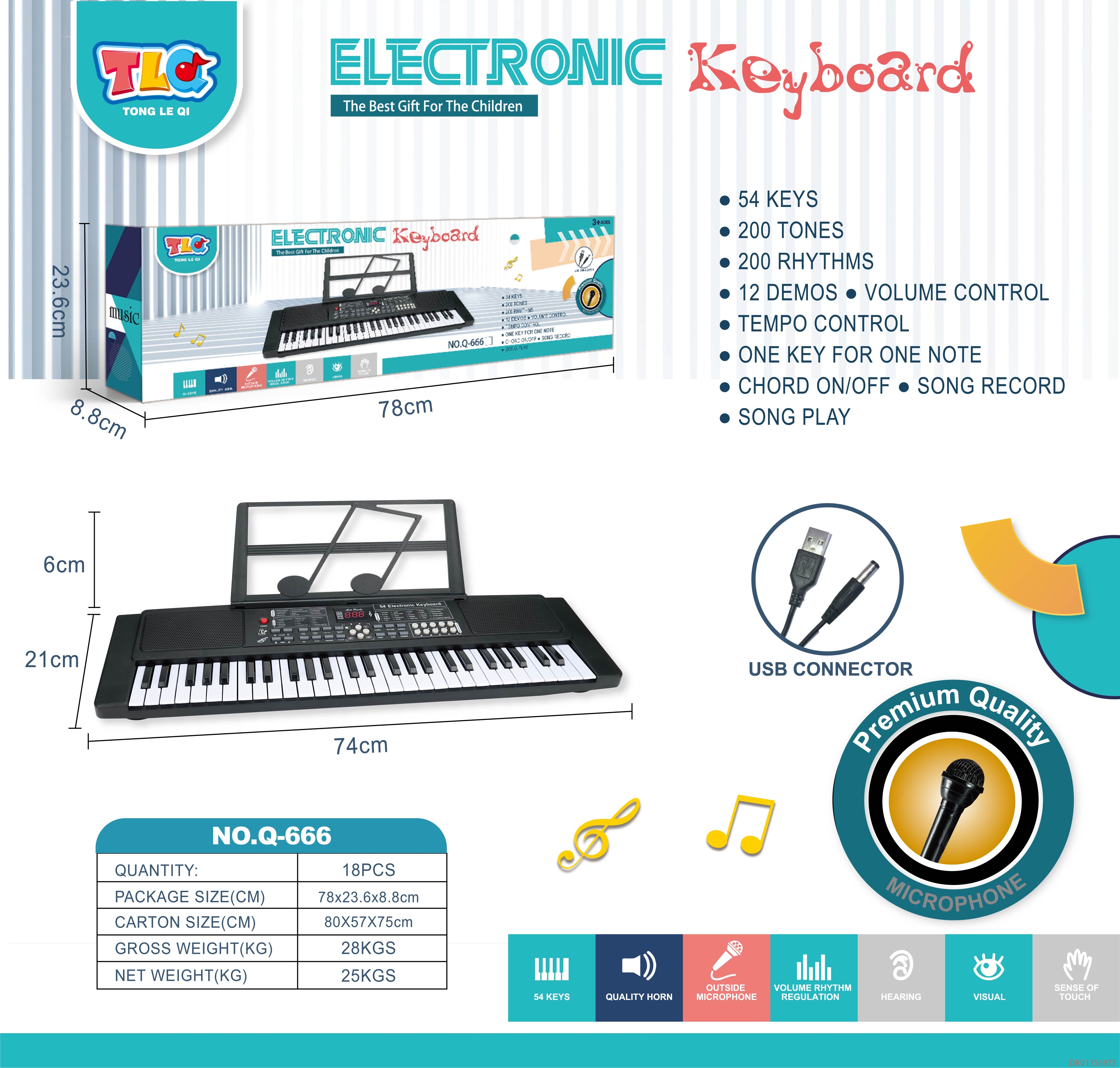 54 Key multifunctional electronic organ with music stand usb connection cable microphone (black)
