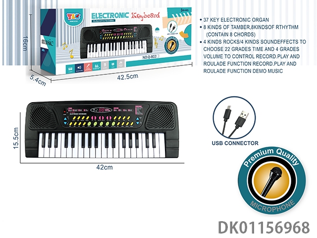 37 Button multifunctional electronic organ with microphone. typec interface connection cable (black)