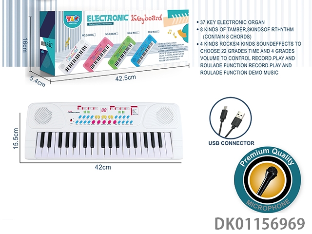 37 Button multifunctional electronic organ with microphone. typec interface connection cable (white)