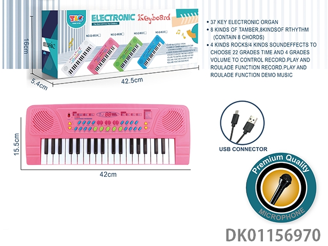 37 Button multifunctional electronic organ with microphone. typec interface connection cable (pink)