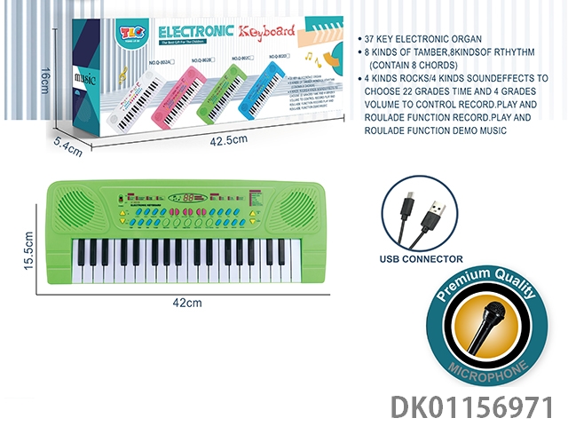 37 Button multifunctional electronic organ with microphone. typec interface connection cable (green)