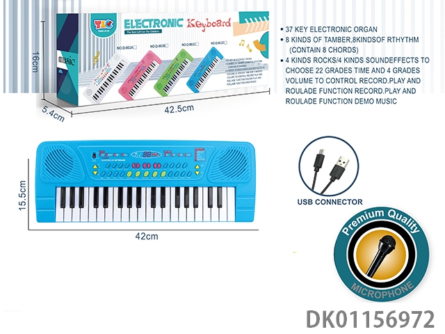 37 Button multifunctional electronic organ with microphone. typec interface connection cable (blue)