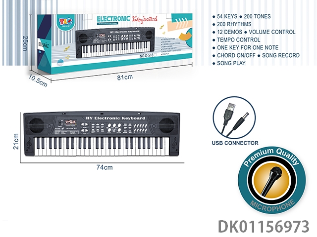54 Key multifunctional electronic organ with usb cable microphone (black)