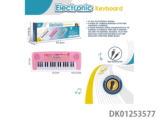 37 Key multifunctional electronic organ with microphone and usb interface cable (pink)