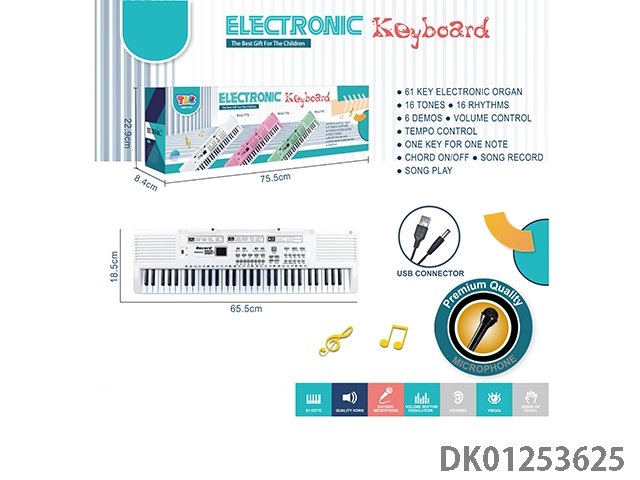 61 Key multifunctional electronic keyboard with usb cable microphone (white)