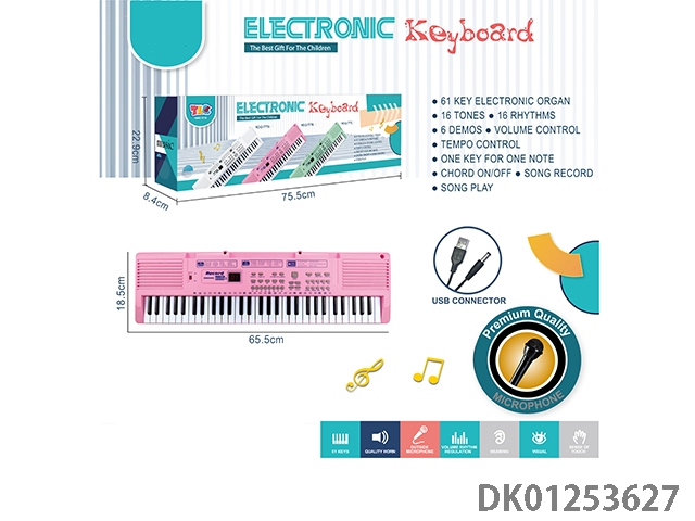 61 Key multifunctional electronic keyboard with usb cable microphone (pink)