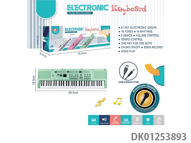 61 Key multifunctional electronic keyboard with usb cable microphone (green)