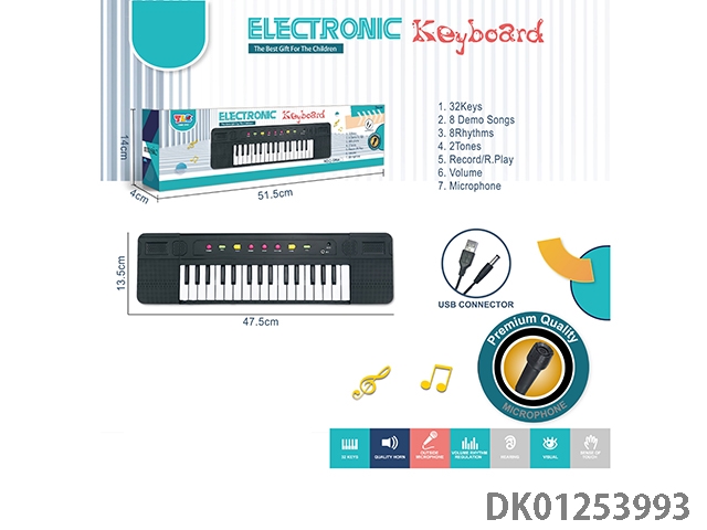 32 Key multifunctional electronic keyboard with usb cable, microphone