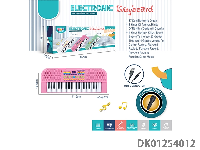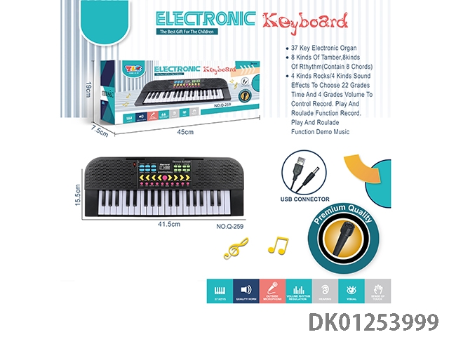 37 Key multifunctional electronic organ with microphone and usb interface cable (black)