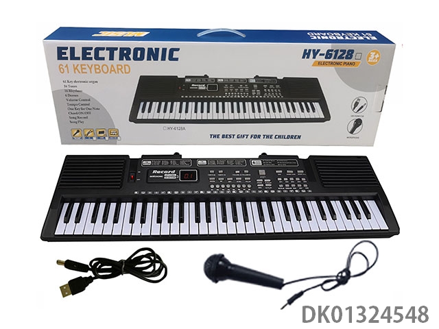 61 Key dual speaker electronic keyboard black/usb power cord/microphone