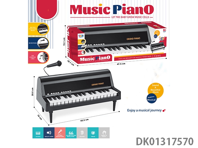 32 Key antique piano with microphone, usb cable bottom bracket (black)