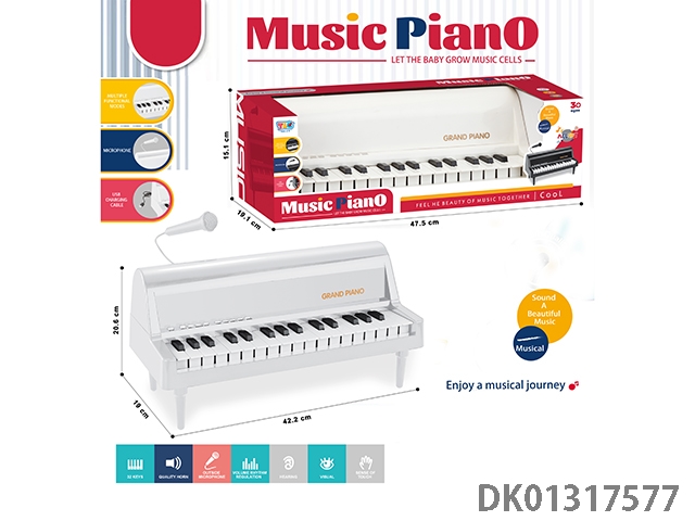 32 Key antique piano with microphone, usb cable bottom bracket (white)