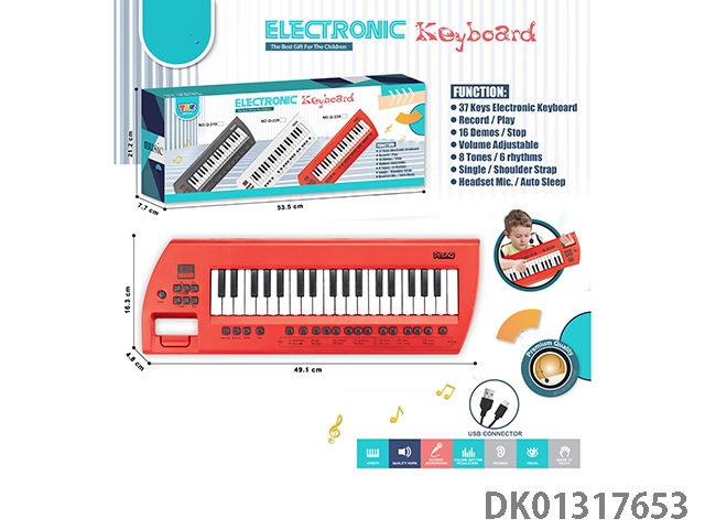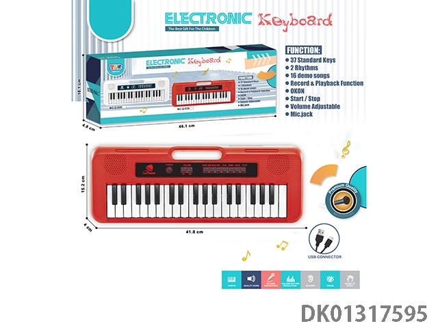 37 Key multifunctional electronic keyboard (red) with headphone typec cable and strap