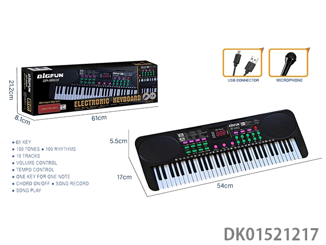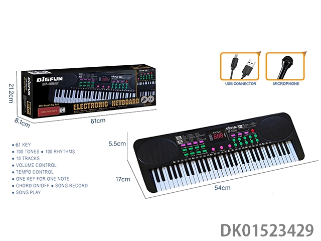 61 Key double speaker electronic organ black/without digital/with usb cable/microphone/card foam/pluggable usb disk