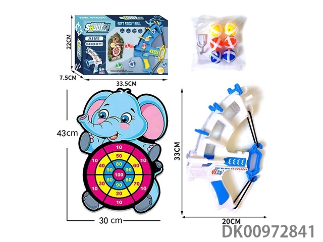 Catapult bow and arrow with elephant target sticky ball hook