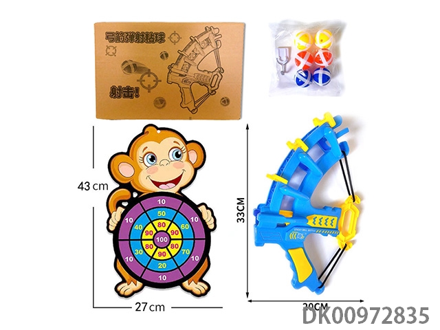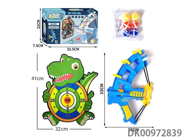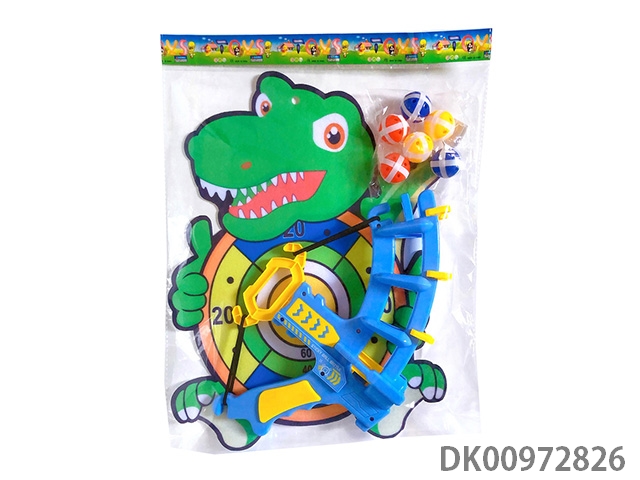 Catapult bow and arrow with dinosaur target sticky ball hook
