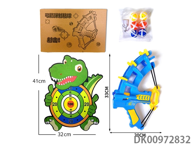 Shooting bows and arrows with dinosaur target sticky ball hook