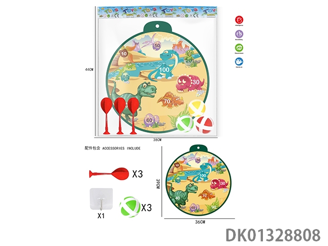 36Cm dinosaur world sticky ball target and 3 balls and 3 darts