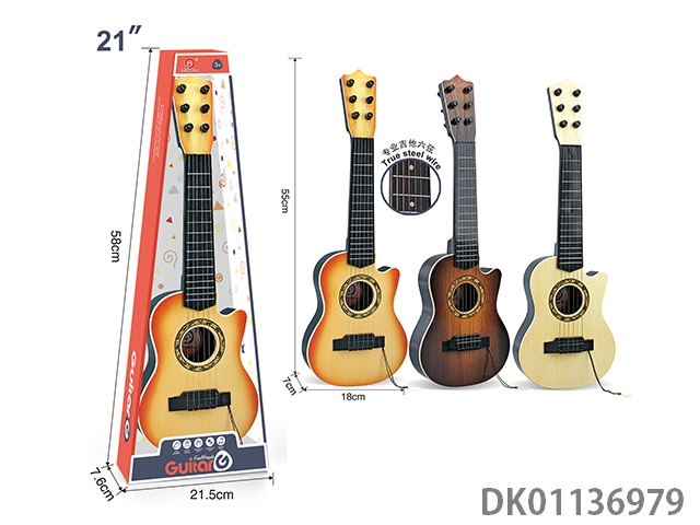 (New packaging) 21 inch missing corner wood grain guitar (3 colors) 6 professional steel wires (mixed with random 2 colors)