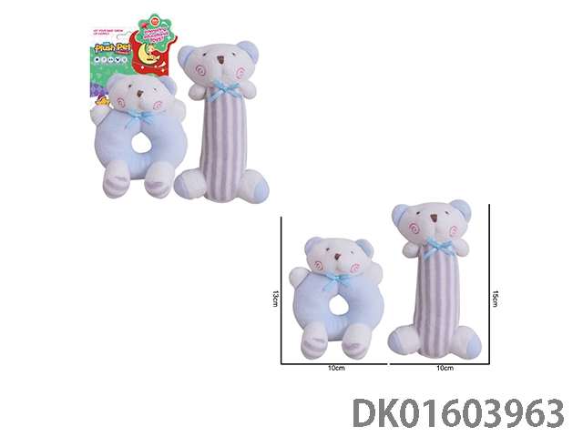 Plush toy cartoon baby enlightenment round hand bell and baton combination blue bear blue