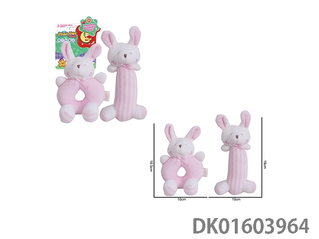 Plush toy cartoon baby enlightenment round hand bell and stick combination pink rabbit pink
