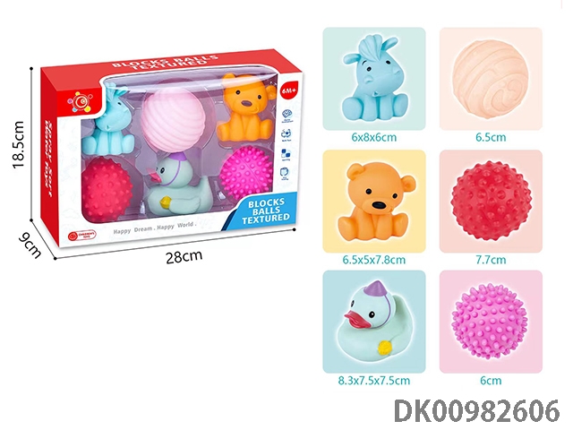 Baby soft rubber building block kneading ball animals (12pcs) 3 animals