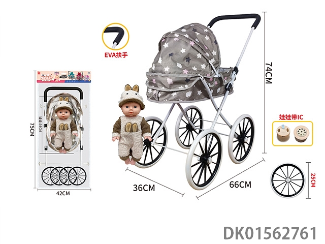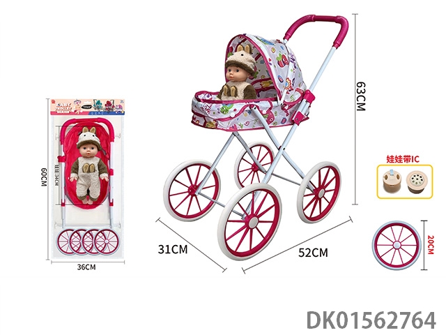 Flower cloth thick cloth and 14 inch (34cm) doll handcart with ic (iron)