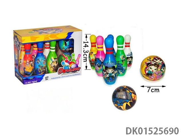 M team pu bowling set bottle: height 14.3cm, ball: 7cm 6 bottles and 2 balls