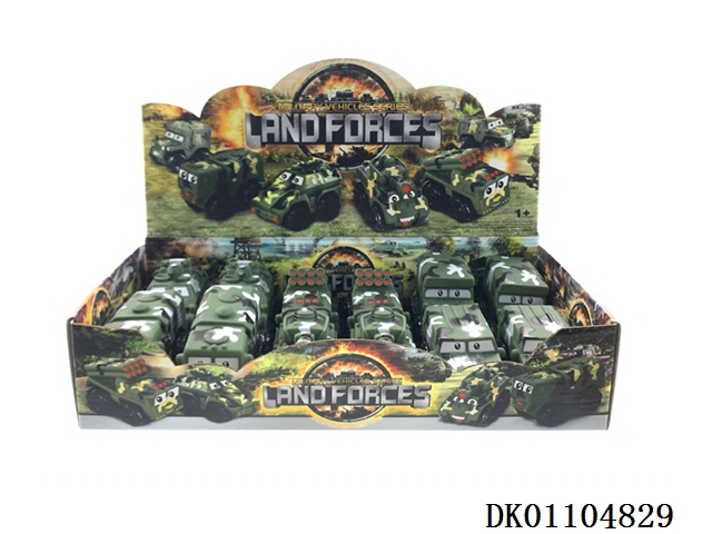 Military series vehicles with 6 mixed packages (plastic lined soft rubber and plastic wheel sliding function) 12 pcs/box