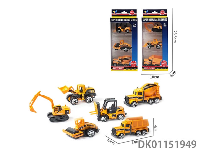 Alloy sliding engineering vehicle 6 mixed packages (6 pieces/box)