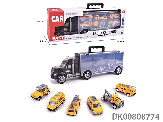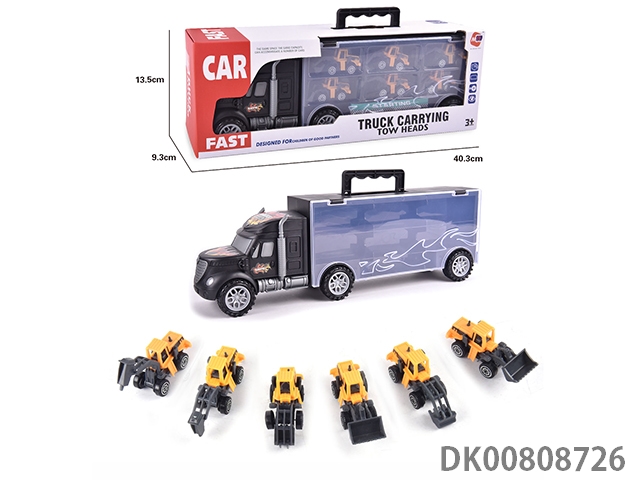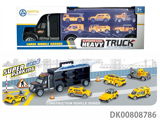 Portable gift box container sliding tractor with 6 sliding engineering vehicles (alloy)